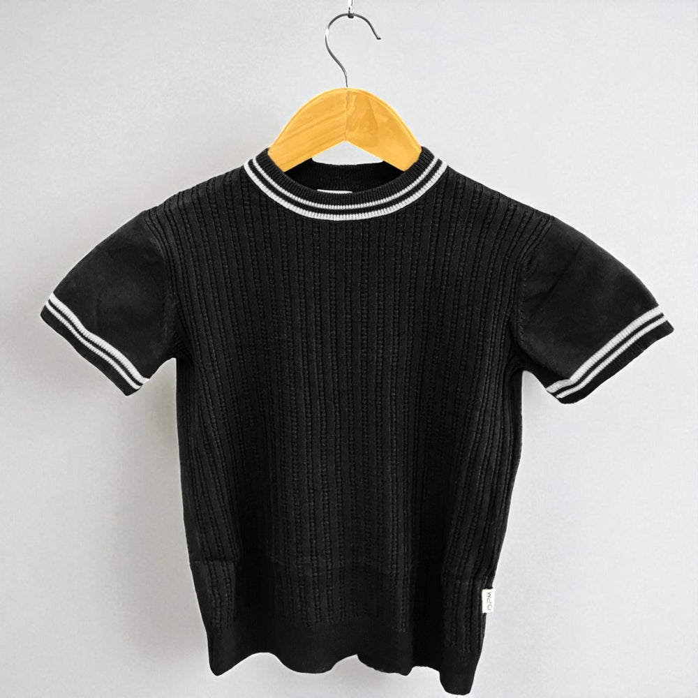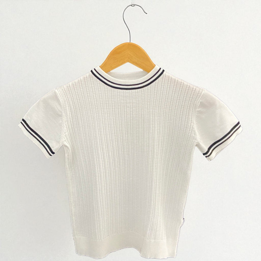La camiseta tejida “Jair” es perfecta para las madres prácticas que buscan una prenda cómoda, fresca y con diseño moderno para sus hijos entre los 2 y 11 años. Su diseño canalado con ribetes a contraste en cuello y mangas aporta un look deportivo y elegante al mismo tiempo.
