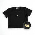 El detalle de una “corona” en pedrería dorada aporta un toque delicado y femenino que resalta su estilo, convirtiéndola en una prenda fácil de combinar con jeans, shorts o faldas.