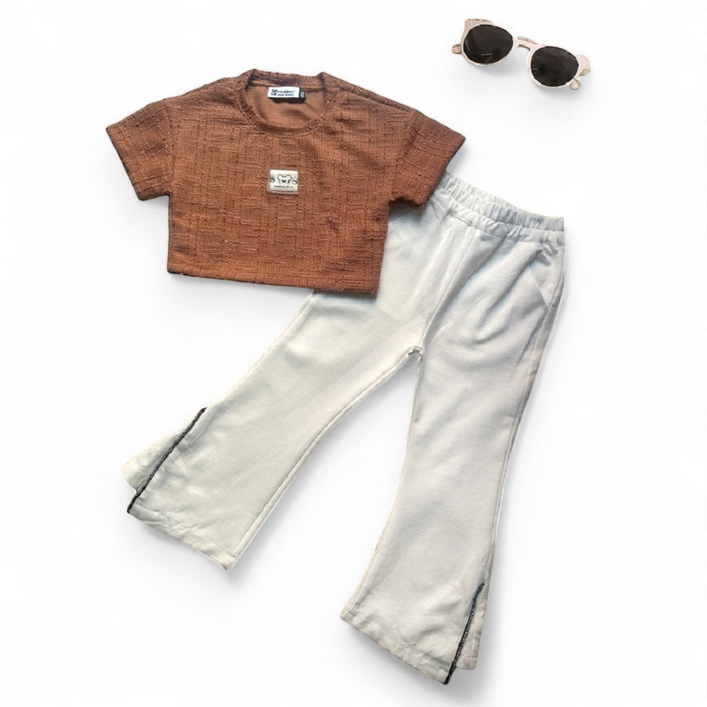 🤍 Blusa manga corta para niña – pecan con detalle 🤍