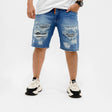 La bermuda Beck es una prenda de estilo urbano con carácter, confeccionada en denim rígido de alta calidad que asegura resistencia y durabilidad. Su diseño en tono azul medio destaca por los rotos grandes y desgastados al frente, que aportan un look moderno y atrevido.