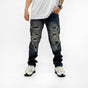 Un jean con actitud y estilo urbano. Su tono azul oscuro con desgastes marcados y rotos amplios al frente crea un look moderno y atrevido, ideal para quienes buscan destacar sin perder comodidad.