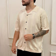 Combinan con todo, esta camisa eleva cualquier outfit casual o semi-formal. El contraste de botones oscuros, el cuello abierto tipo cubano y su silueta relajada, hacen de esta pieza un básico moderno.